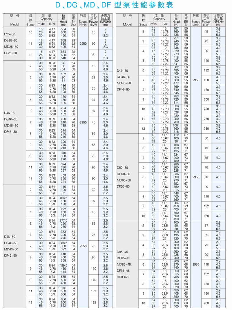MD型高吸程單吸多級(jí)耐磨泵是在D型泵基礎(chǔ)上改進(jìn)設(shè)計(jì)的一宗耐磨多級(jí)離心泵。MD型泵高效節(jié)能,耐磨性好,壽命長(zhǎng),特別適用于礦山排水,輸送固體顆粒含量不大于1.5%(顆粒直徑小于0.5mm)的礦井水及其他類(lèi)似液體,液體溫度不高于80℃。